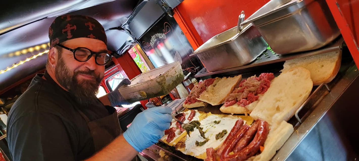 Tipico “Pane di una volta alla Moda Veja” Canavesano farcito con prodotti locali come: il salignun (una crema di ricotta fresca alle erbe alpine e peperoncino), salumi caserecci come il salame di patata (un insaccato di salame suino, pancetta, lardo e patate bollite) e tante altre bontà a scelta.